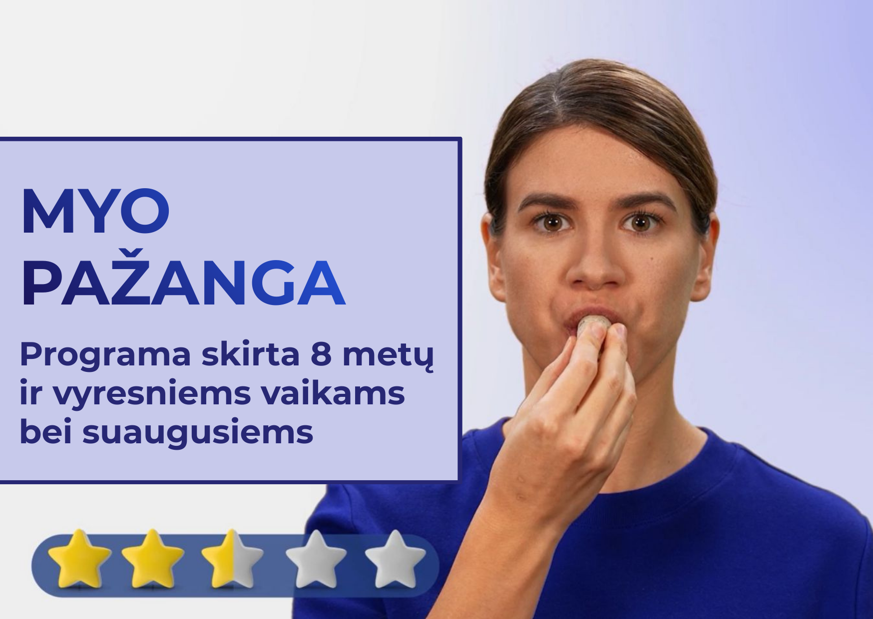 Pagrindinė Miofunkcinės terapijos, įgūdžių formavimo (1 etapas), internetinė programa, skirta vaikams nuo 8 metų ir suaugusiems.